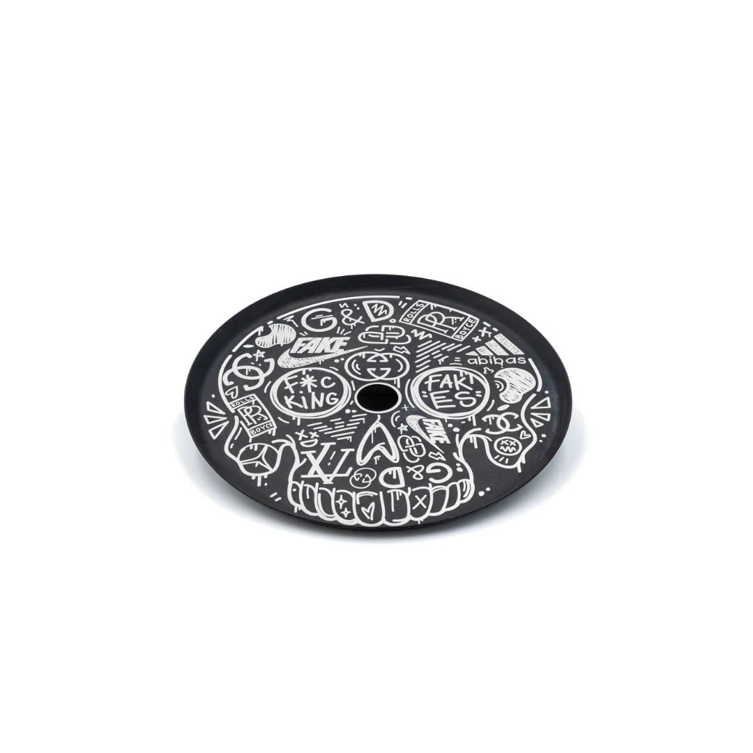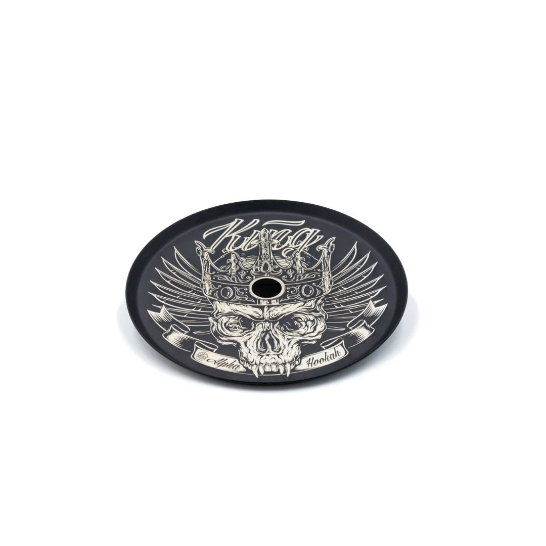 The Alpha Hookah Tray is a piece of art! With unique designs and a matte black finish it is a must for any hookah collector!
