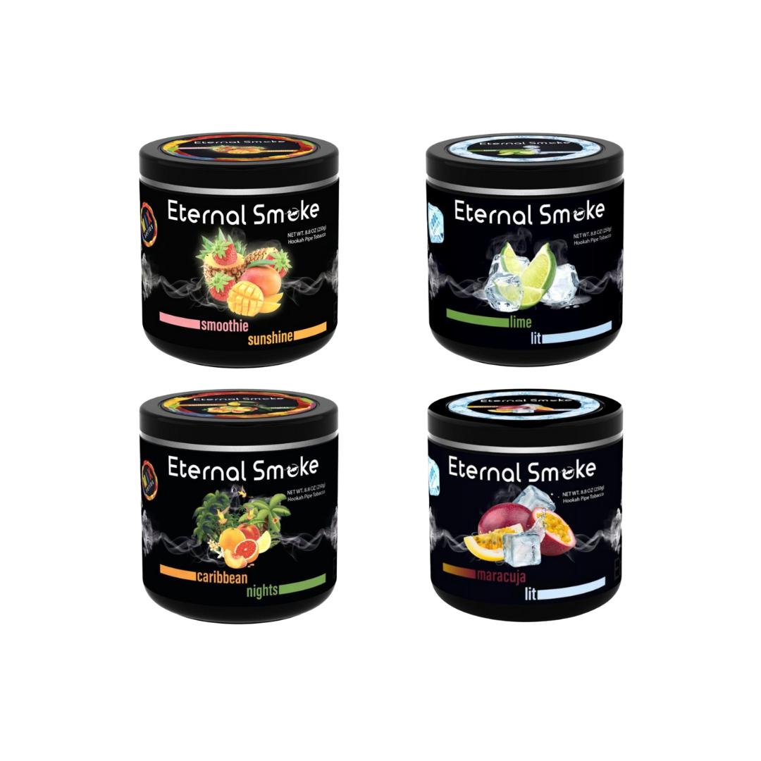 Indulge in endless flavor possibilities with Hookah Vault’s Eternal Smoke Bundle. Handpick any four 250g jars from Eternal Smoke’s premium lineup, giving you a full kilogram of top-quality tobacco to enjoy. Whether you stick with your go-to blends or venture into exciting new tastes, this bundle delivers smooth clouds, rich flavor, and unbeatable value all in one package.